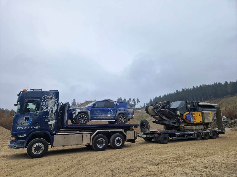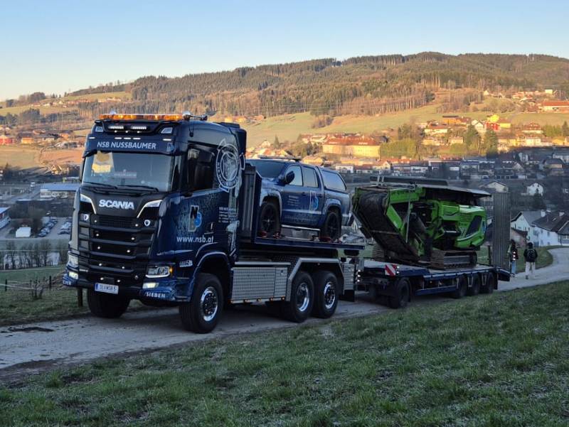 Der 4 Achs-Tieflader ist eine Sonderanfertigung der Firma Gföllner.
